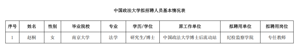 根据《中国政法大学公开招聘事业编制人员的规定》,拟招聘下列人员来校工作,现予以公示。公示期为7个工作日,自2025年10月31日至2025年11月10日。